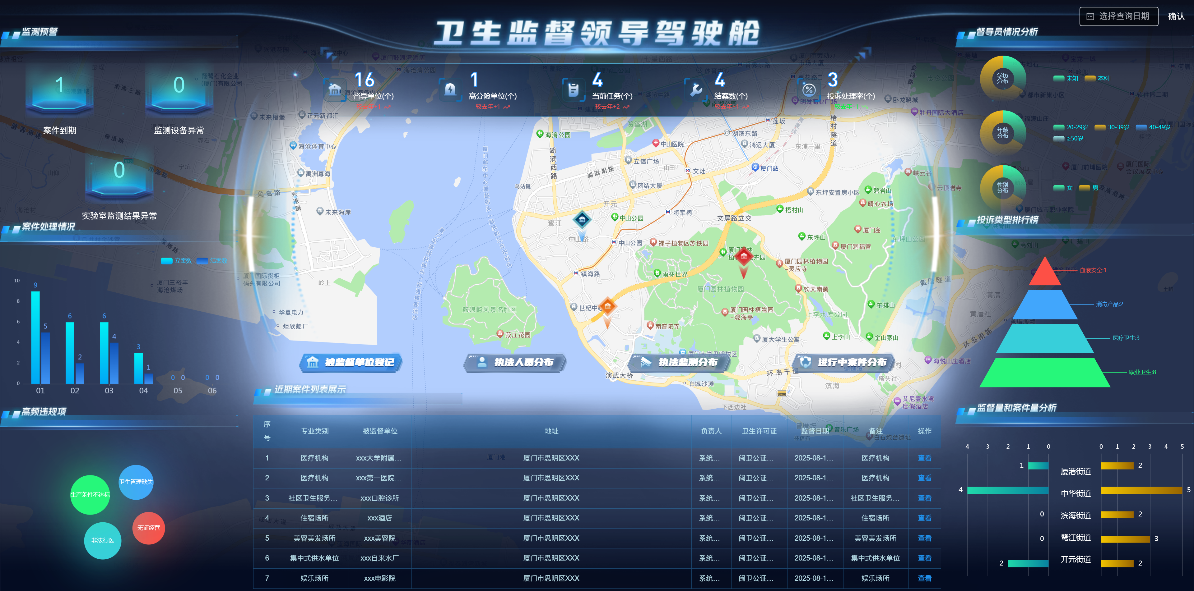“智慧衛(wèi)監(jiān)綜合監(jiān)管服務(wù)管理系統(tǒng)”涵蓋監(jiān)督執(zhí)法應(yīng)用、非現(xiàn)場執(zhí)法應(yīng)用、碼上監(jiān)管、可視化駕駛艙、信息交換系統(tǒng)等內(nèi)容,實現(xiàn)加強衛(wèi)生監(jiān)督綜合執(zhí)法能力建設(shè),依法推進(jìn)衛(wèi)生監(jiān)督工作,不斷創(chuàng)新衛(wèi)生監(jiān)督執(zhí)法手段,提高衛(wèi)生監(jiān)督的監(jiān)管和應(yīng)急處置水平,通過建設(shè)智慧衛(wèi)監(jiān)系統(tǒng),將傳統(tǒng)現(xiàn)場監(jiān)管與非現(xiàn)場物聯(lián)網(wǎng)智能監(jiān)督監(jiān)測手段相結(jié)合,解決目前衛(wèi)生監(jiān)督機構(gòu)無法及時掌握和處置突發(fā)狀況的問題,做到在第一時間獲取現(xiàn)場數(shù)據(jù),在事件發(fā)生、升級前提前預(yù)警和處置,提高執(zhí)法效率。